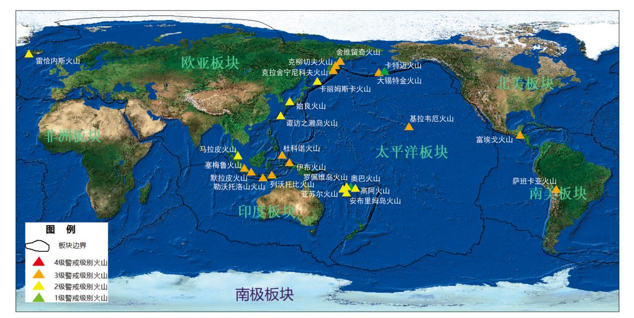 本周全球正在活动的火山共计24座(图1),其中新增活动火山0座。