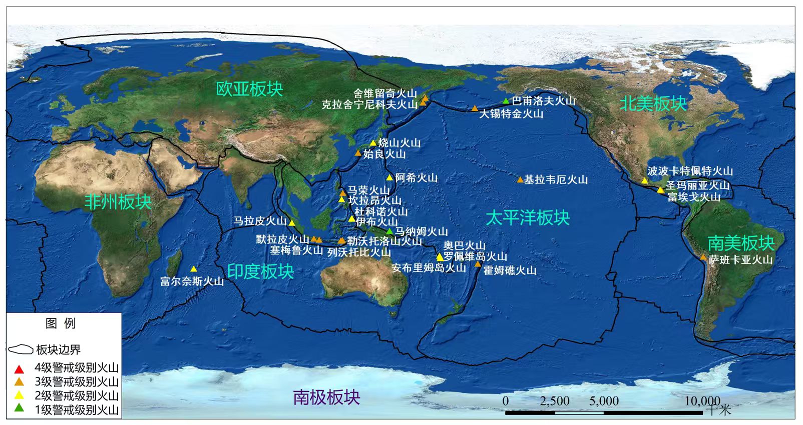 本周0座火山处于四级警戒,13座火山处于三级警戒,12座火山处于二级警戒,2座火山处于一级警戒。